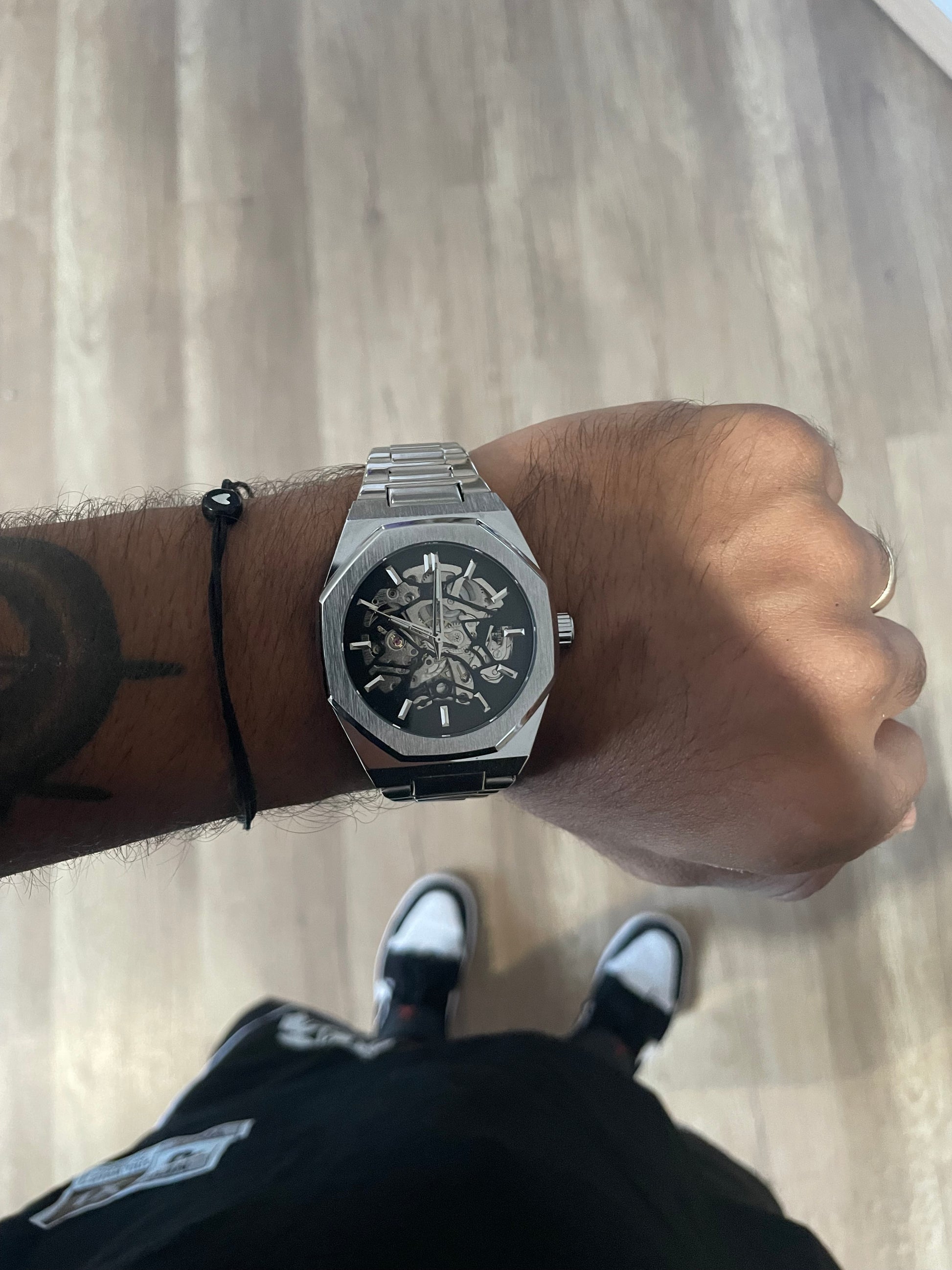 A Nordelux Kazir modern, letisztult vonalvezetésével és különleges skeleton számlapjával nem csupán egy óra – hanem egy stílusnyilatkozat. A nemesacél tok és szíj időtállóságot és férfias karaktert sugároz, miközben a mechanikus szerkezet finom mozgása betekintést enged a valódi órakészítés világába.